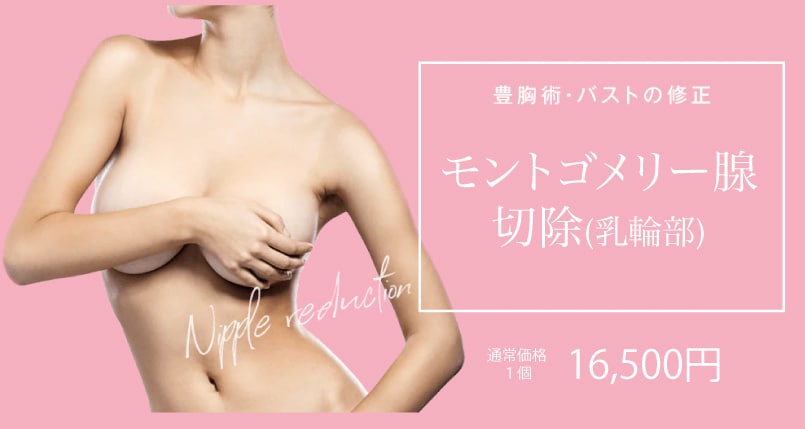 体に害のない範囲でモントゴメリー腺をメスで排除し、極細の糸で丁寧に縫合いたします。そのため傷痕をほとんど残すことなくきれいなバストトップを形成することができます。