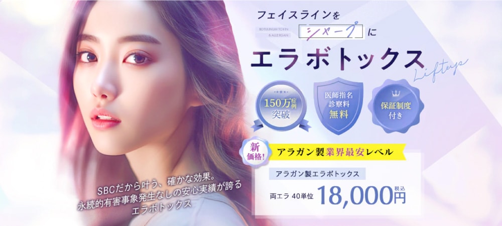 「エラの張りをすっきり解消。手軽に叶える理想の小顔」 発達しすぎたエラの筋肉(咬筋)に注射し、筋肉の動きをリラックスさせることで、角張った輪郭をシャープに整えます。食いしばりや歯ぎしりの改善にも効果的。切開なしの短時間施術で、周囲に気づかれず自然にフェイスラインを細く見せたい方におすすめです。