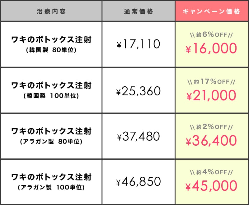 ワキのボトックス注射