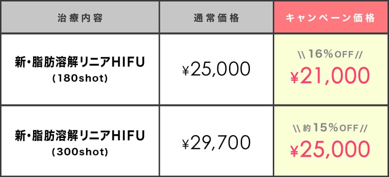 新・脂肪溶解リニアHIFU