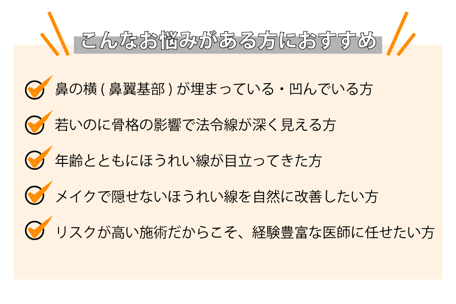 鼻横の凹みが原因でほうれい線が深く見えている方に効果的で、