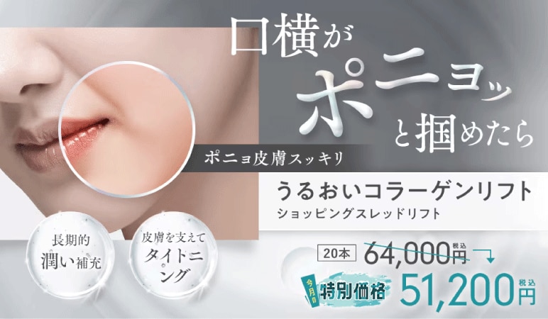 うるおいコラーゲンリフト(ショッピングスレッドリフト)は施術後のダウンタイムや痛みが少なく、