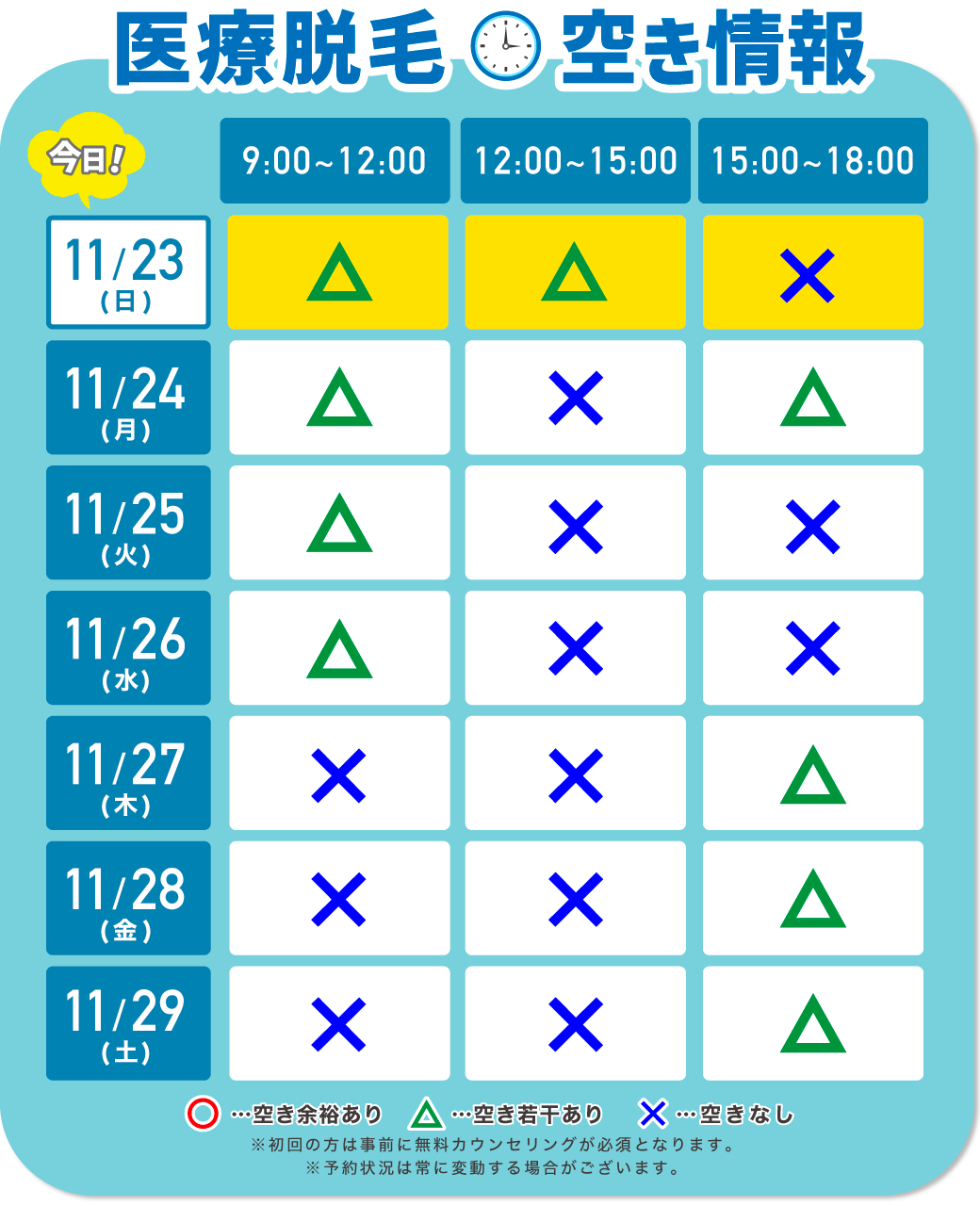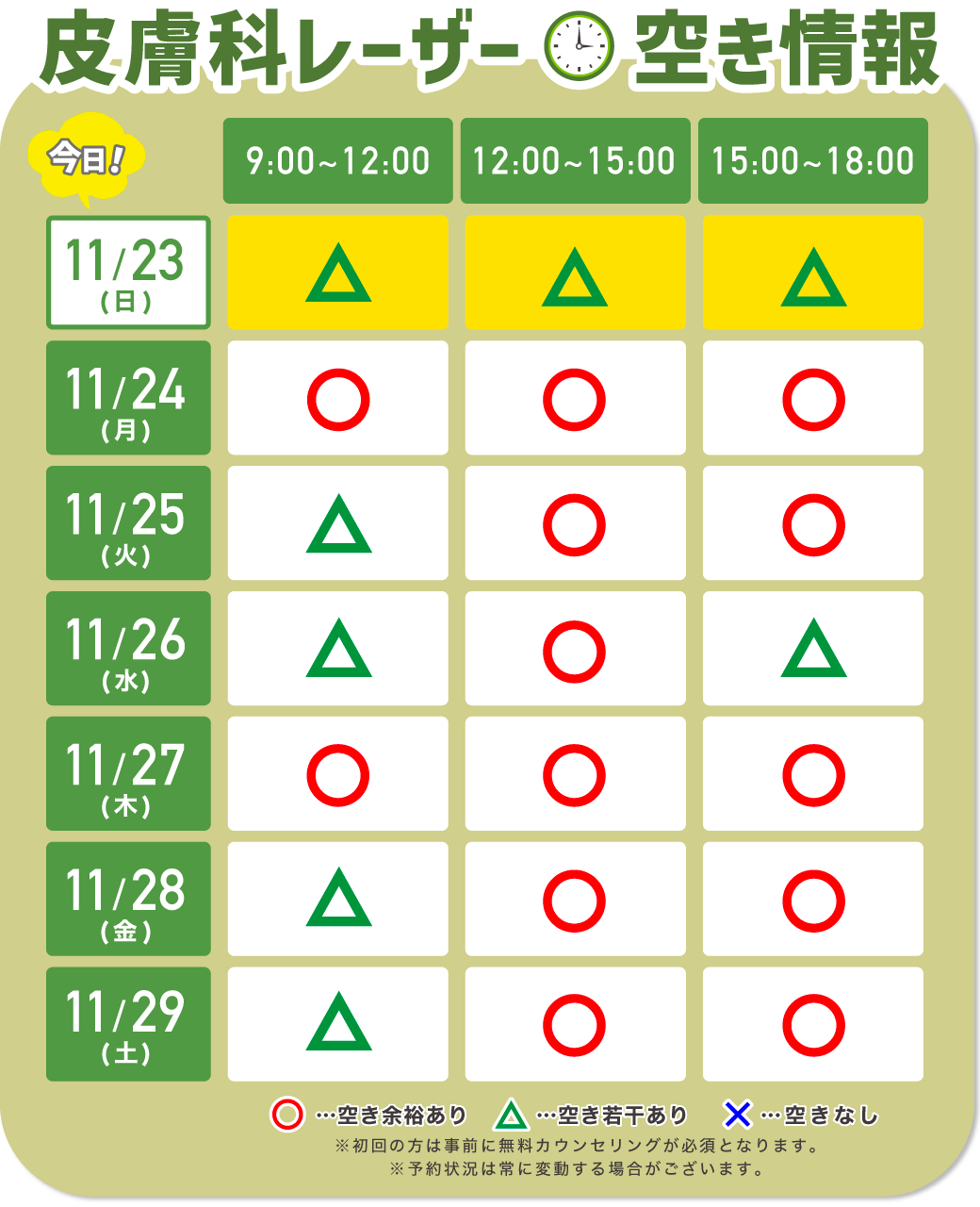診療時間 9:00~18:00(最終カウンセリング予約/16:30)