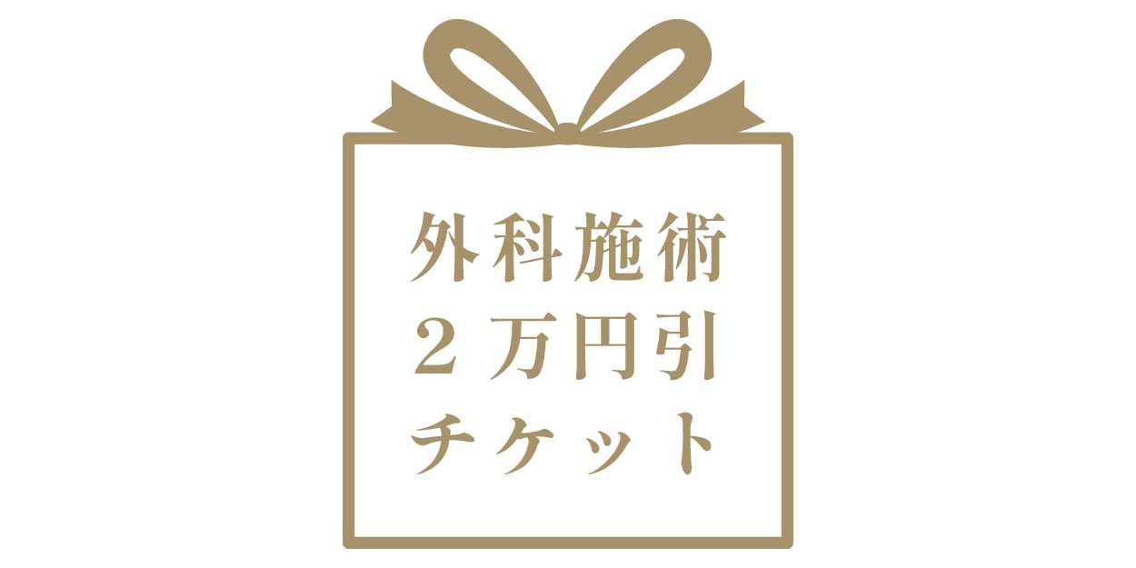 ・このチケットはお会計時の麻酔代を除く美容外科治療の会計が10万円を超えた場合に2万円割引が適用されます。