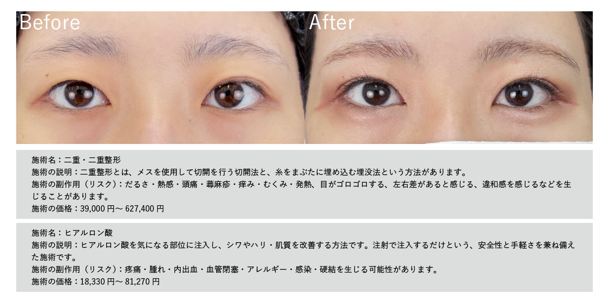 内容:週末二重術と涙袋ヒアルロン酸RHA1(0.3㏄)のセットメニュー