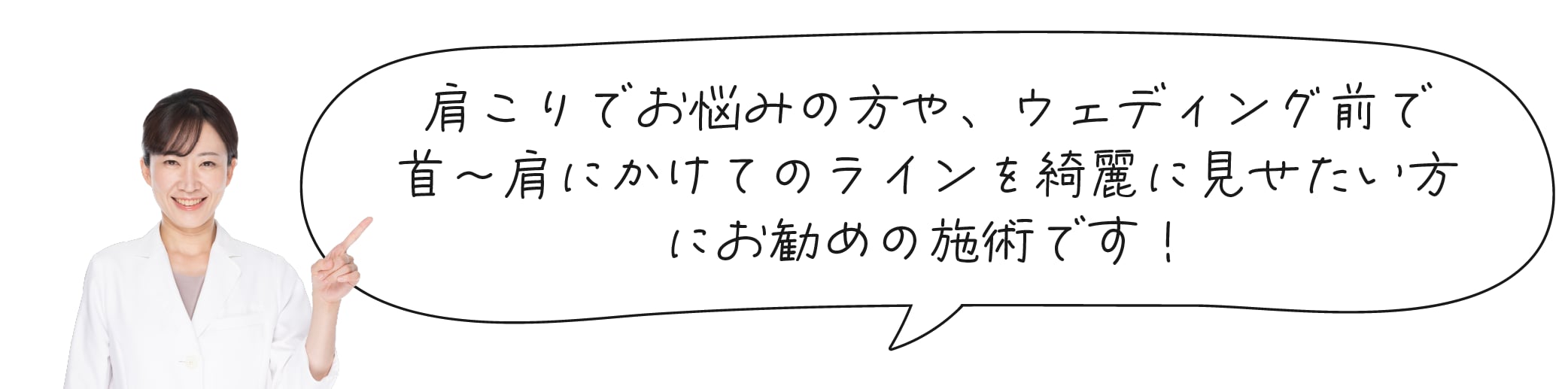 肩ボトックスは僧帽筋の緊張を和らげ、肩こりの改善を促進します。