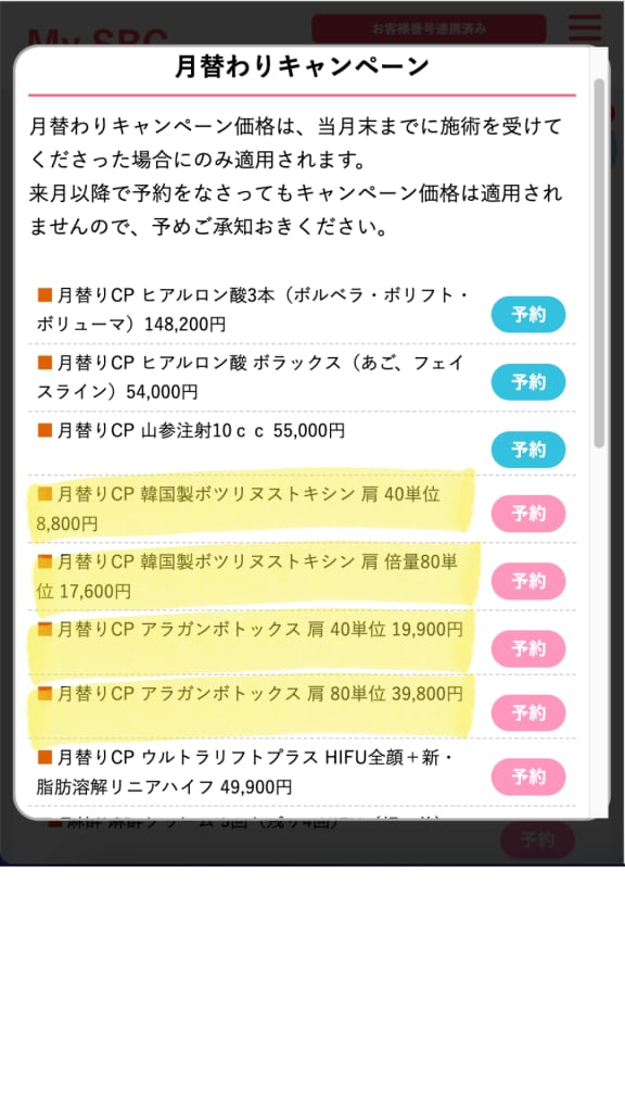また、しみ取り、医療ハイフ、ワキガ多汗症治療、医療脱毛、美容皮膚科などのSBC人気施術の取り扱いも多数ございます!