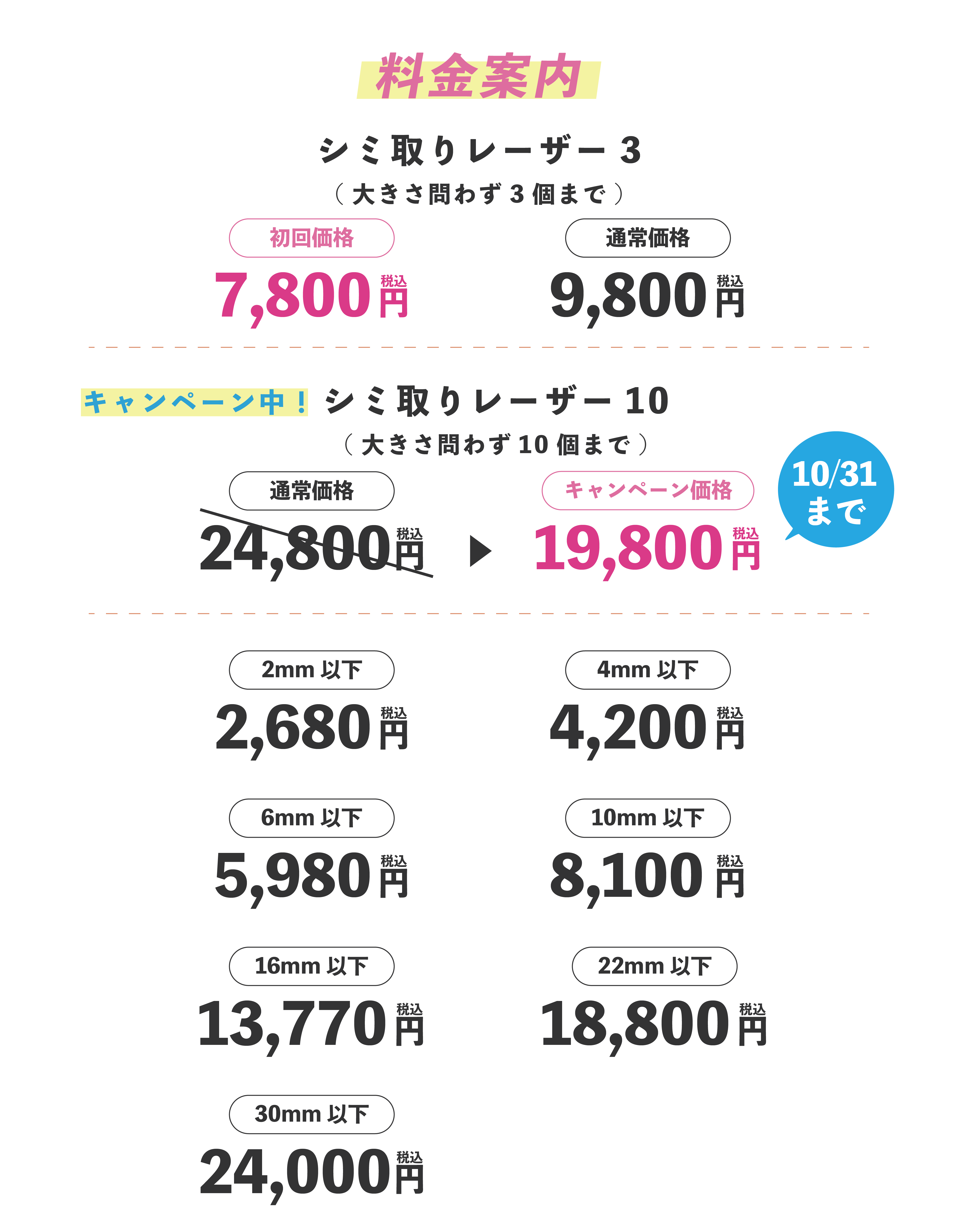 ※初回価格はSBCでシミ取りレーザー・ピコスポットシミ取り放題を受けたことが無い方が対象。