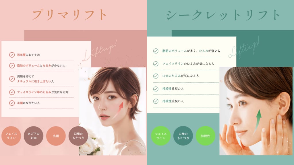 脂肪の厚みやたるみが強めの方はしっかりと引き上げできるシークレットリフトがオススメ。
