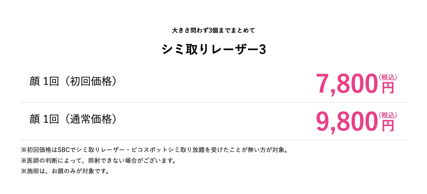 また、しみ取り、医療ハイフ、ワキガ多汗症治療、医療脱毛、美容皮膚科などのSBC人気施術の取り扱いも多数ございます!