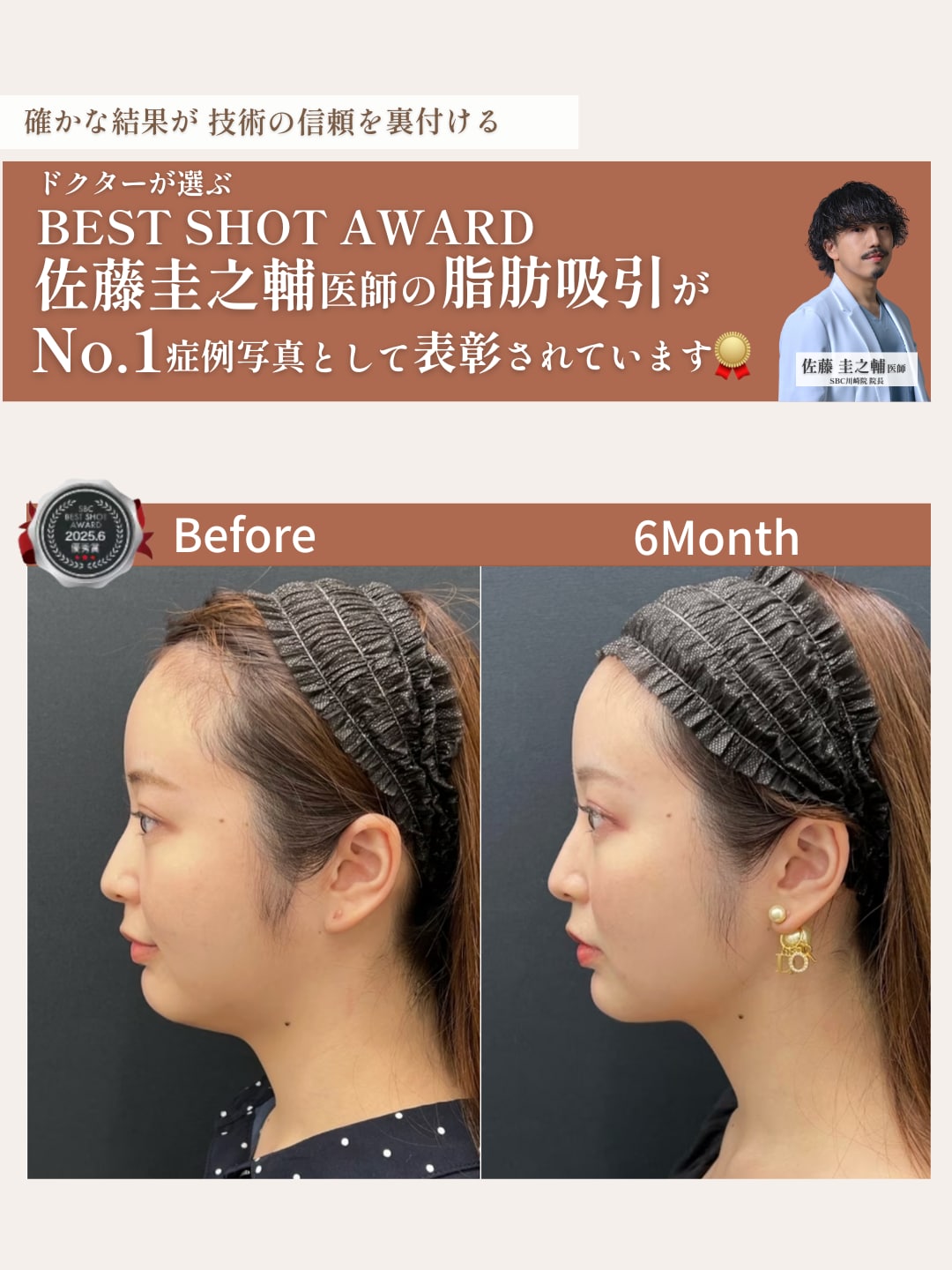 このダブルアプローチにより、加工アプリ不要の「アイドル級小顔」が完成します。脂肪吸引の実績が豊富な佐藤院長だからこそ、糸との組み合わせで最高の結果を引き出します。