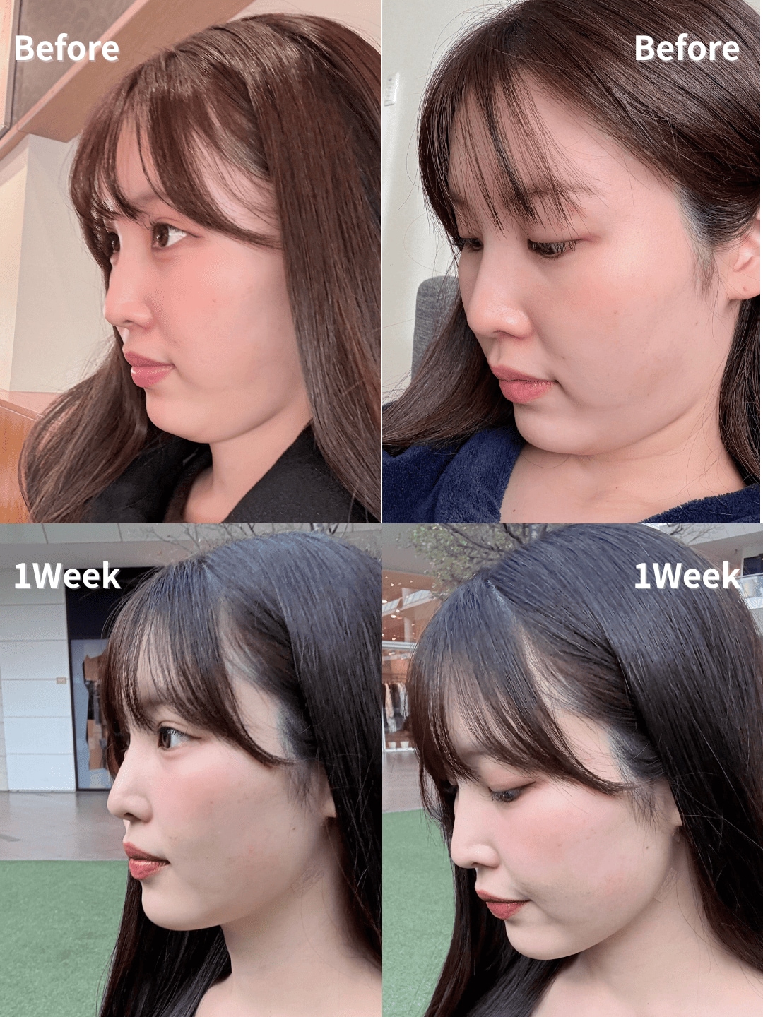 ※たったの1週間でフェイスラインがくっきりと現れ、横顔のシルエットが見違えるほど美しくなりました