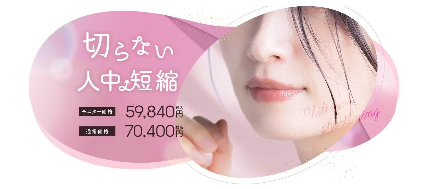 切らない人中短縮とは、吸収される外科用の縫合糸を使用し、鼻下から人中に糸を通して縫い縮める治療です。メスを入れることなく人中を短い印象にする事が出来ます。