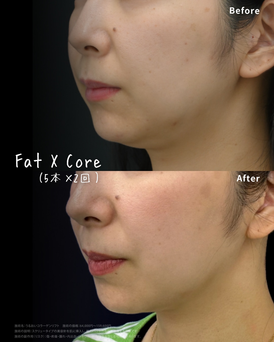 ボツリヌス由来成分を練り込んだ糸で、引き締めとシワ緩和を同時に叶える次世代スレッド。口横のもたつきや額のハリにピンポイントでアプローチできます。