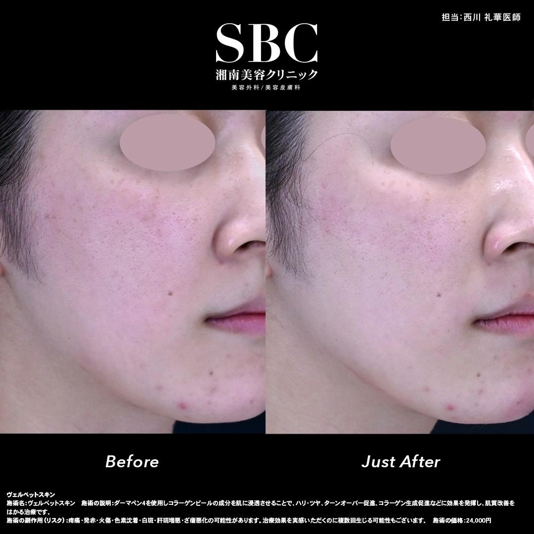 ダーマペン4とマッサージピールを組み合わせ、ヴェルベットのような滑らかな極上肌へ導く治療です。毛穴の引き締めやハリ、透明感を求める方に絶大な人気を誇ります。