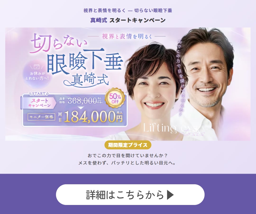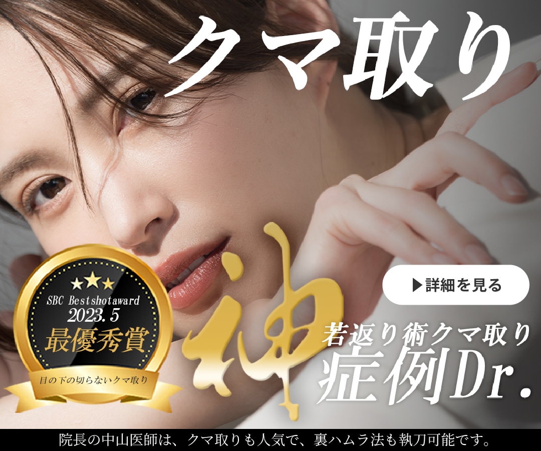 院長の中山医師は、切らない眼瞼下垂(SBCデカ目術)や埋没二重術、さらにクマ取り・脂肪注入・糸リフトなどの若返り治療を得意としています。