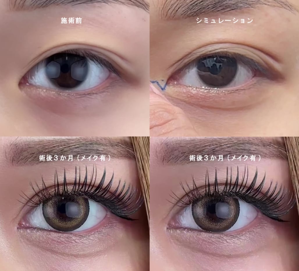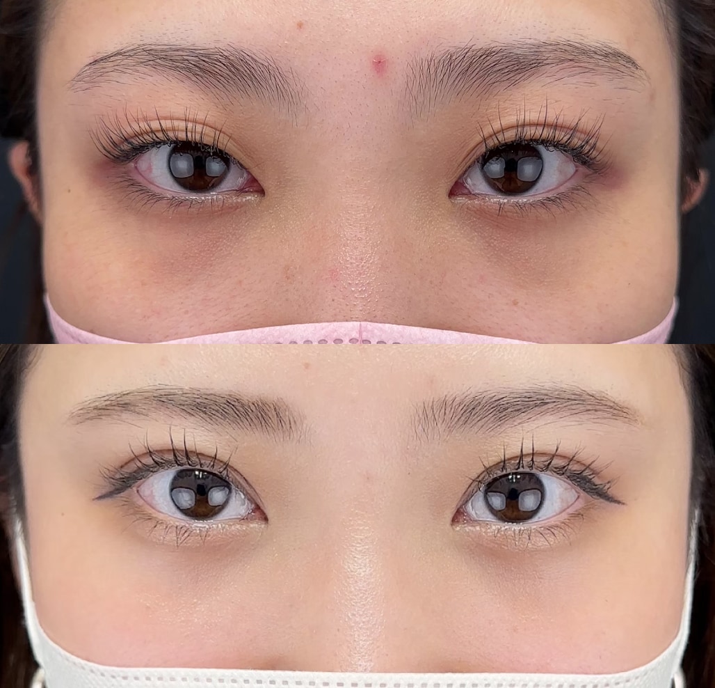 上まぶた(二重)と下まぶた(クマ)を同時に整えることで、目元全体の輝きが変わり、一気に若々しくアカ抜けた印象になります。