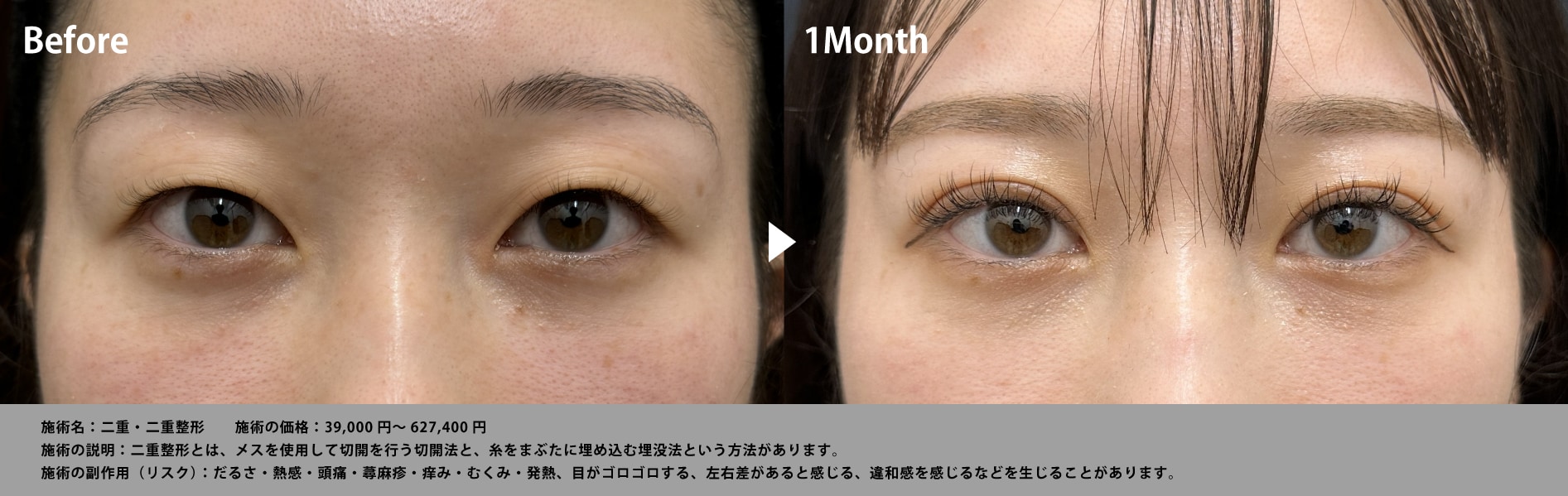 表面に一切傷を残さない特殊な術式により、施術直後からメイクが可能。さらに、3つのループで固定することで、従来の埋没法では難しかった「圧倒的な持続力」と「自然なライン」を両立させる二重術です。