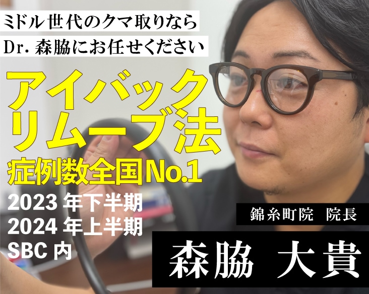 院長の中山医師は、切らない眼瞼下垂(SBCデカ目術)や埋没二重術、さらにクマ取り・脂肪注入・糸リフトなどの若返り治療を得意としています。