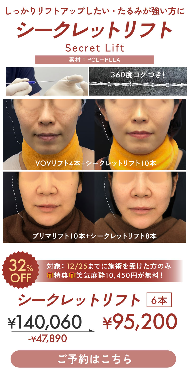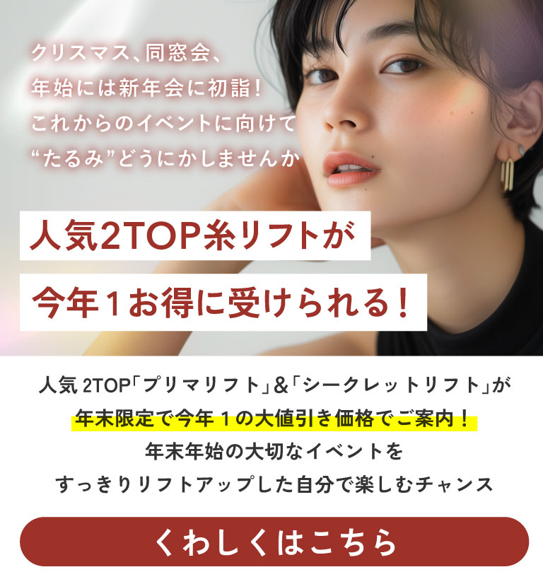 そのほか、二重整形やクマ取り、糸リフト、眉下切開をはじめ、美容皮膚科の医療ハイフ、ヒアルロン酸、医療脱毛、シミ治療、ニキビ治療、ワキガ・多汗症など幅広い施術を取り扱っております。