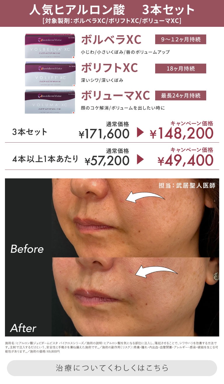 そのほか、二重整形やクマ取り、糸リフト、眉下切開をはじめ、美容皮膚科の医療ハイフ、ヒアルロン酸、医療脱毛、シミ治療、ニキビ治療、ワキガ・多汗症など幅広い施術を取り扱っております。
