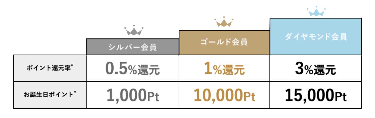 お誕生日ポイントの付与額は、お誕生日45日前時点のランクにより確定いたします。