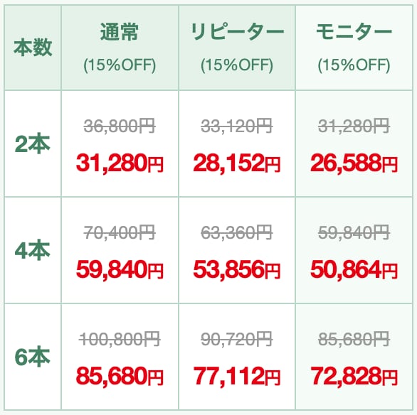 • モニター価格、リピーター価格にも適用可能です。
