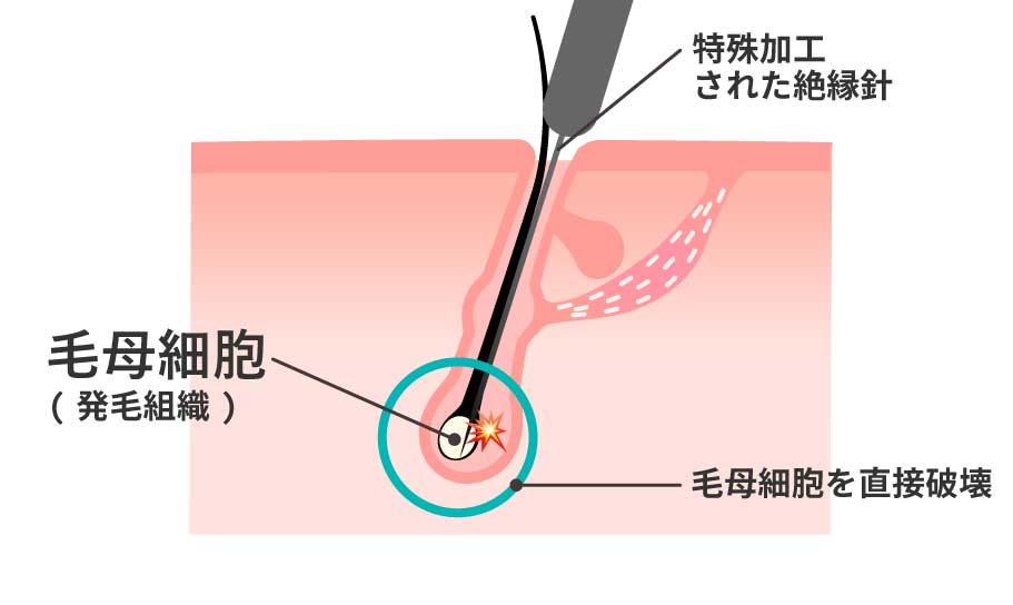 1本1本の毛を狙って毛母細胞(発毛組織)を直接破壊します。