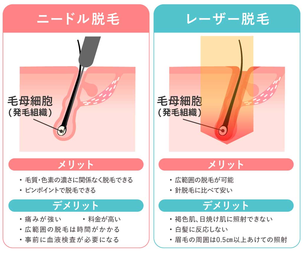 ニードル脱毛・レーザー脱毛の違い