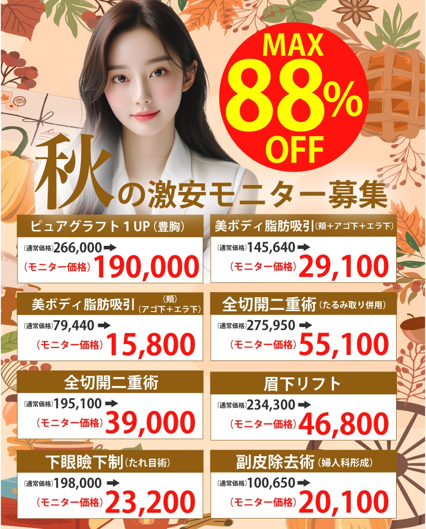 人気のボトックスや肌治療が秋限定の特別価格に♡