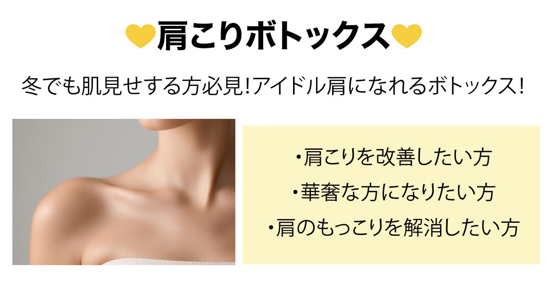 注射で簡単、ほっそり首元・肩のスタイルアップを実現!肩凝りの辛い痛みの改善にも効果的!