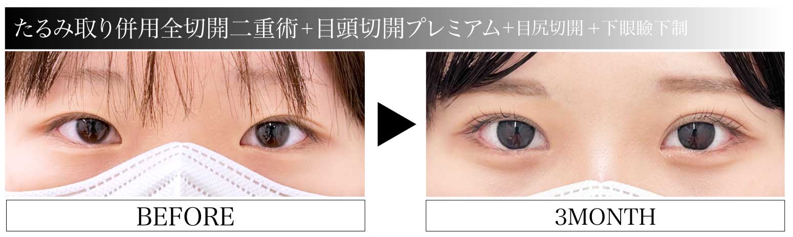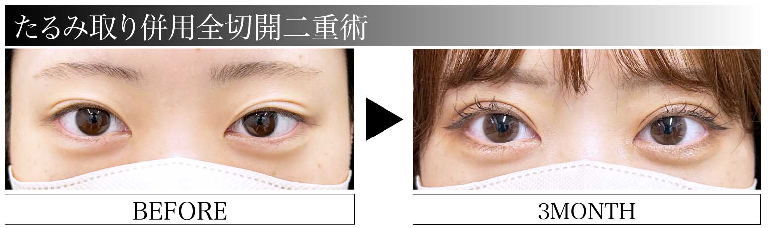 たるみ取り併用全切開二重術×目頭切開