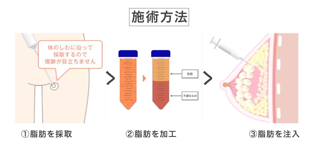 上記のイラストをご覧ください!通常の脂肪豊胸は麻酔液のみを取り除きお胸に注入していきます。