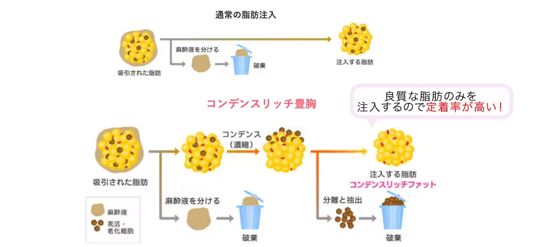 コンデンスリッチ豊胸は採取した脂肪から不純物を取り除きお胸に注入するため、定着率が高いのです✨