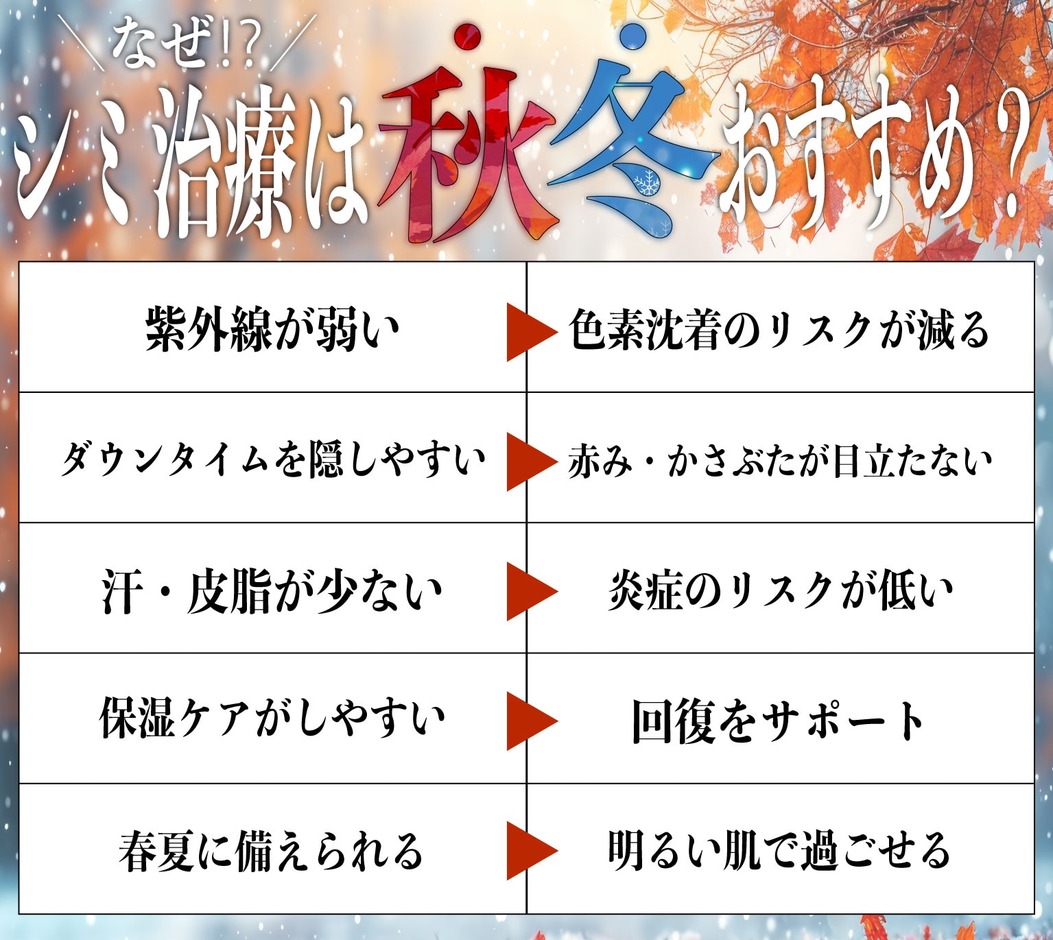 シミ治療をするなら秋・冬がおすすめ🍂⛄️