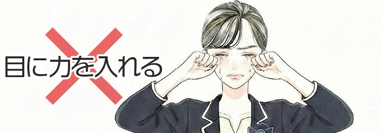 「目を見開く」「強く目を閉じる」といった動作はもちろん、重い荷物を持つ、トイレでいきむなど、顔にグッと力が入る動作も要注意です。 傷口に負担がかかり、内出血の原因になることがあります。