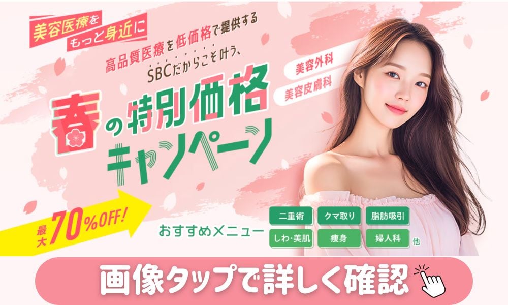 SBCメディカルグループでは、2018年6月1日に施行された医療広告ガイドラインを受け、ホームページ上からの体験談の削除を実施しました。また、症例写真を掲載する際には施術の説明、施術のリスク、施術の価格も表示させるようホームページを全面的に修正しております。当ホームページをご覧の患者様、お客様にはご迷惑、ご不便をおかけ致しますが、ご理解のほどよろしくお願い申し上げます。