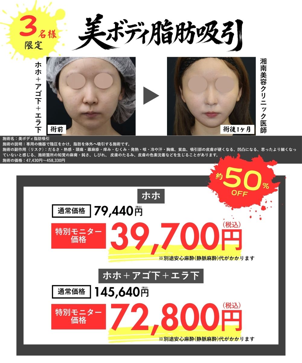 脂肪吸引がキャンペーンのメニューに追加されました!