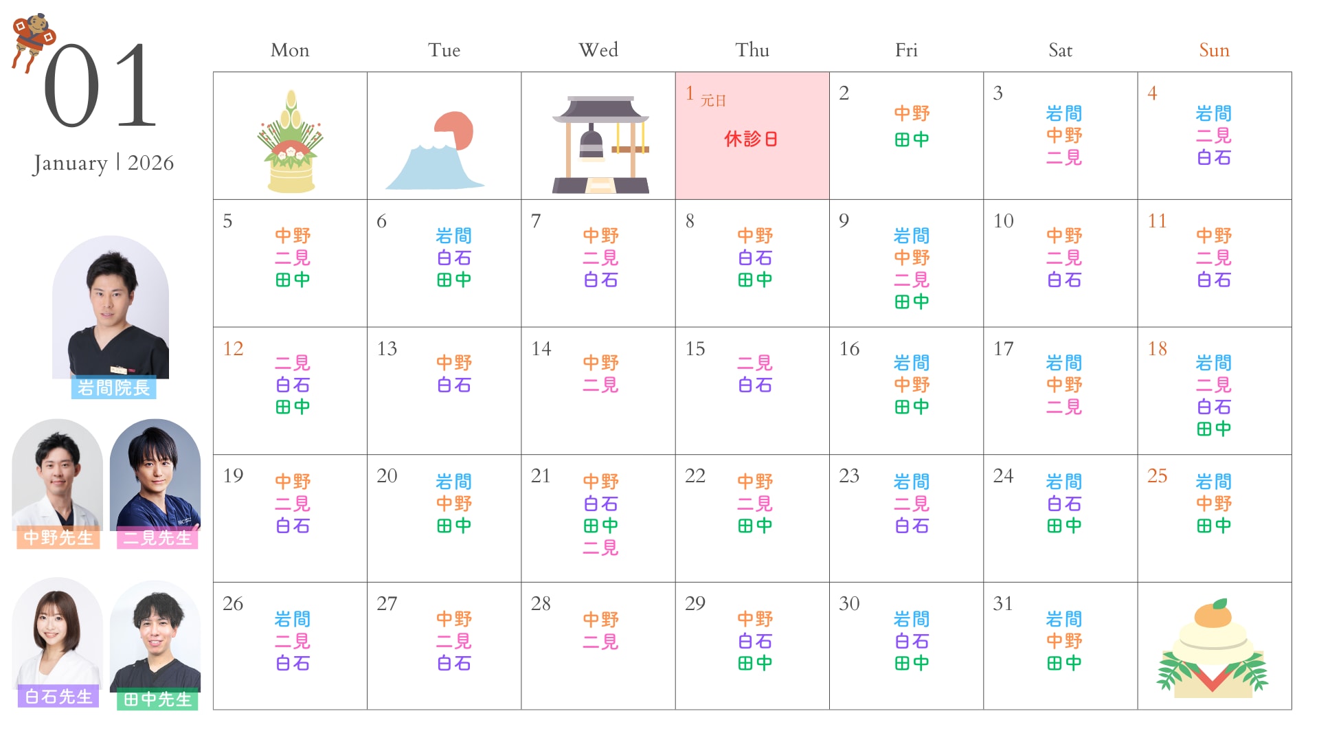 2026年1月のドクター出勤スケジュールを公開しました♡