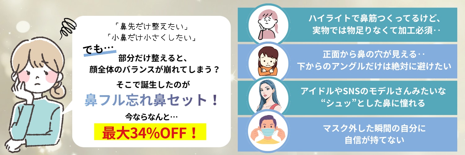鼻整形を検討している方必見!【鼻フル忘れ鼻セット】が期間限定で登場しました!
