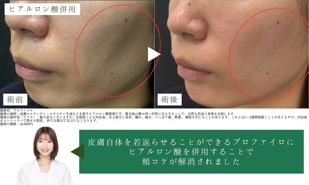 2種類のヒアルロン酸を特殊配合した製剤で、皮膚内部でコラーゲンやエラスチンなどの生成、細胞の活性化を促す肌再生機能があり、ハリ・弾力が改善されます🫧