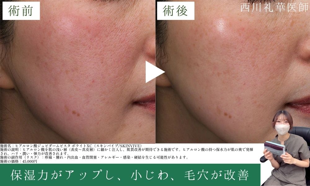 これにより、肌のハリ、小ジワ、毛穴の開き、肌質改善効果が期待できます。