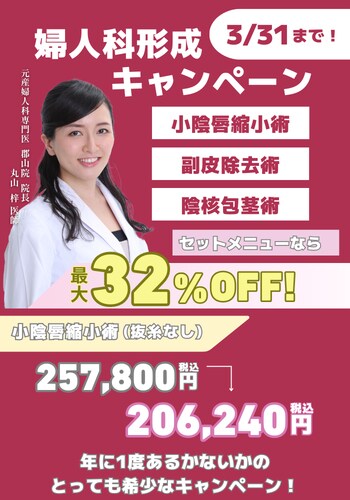 婦人科形成のキャンペーンは、年に1回あるかないかと言われるほどとても希少なキャンペーンです!