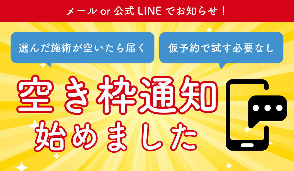「あの施術を受けたいけれど、予定が合うかな?」と思ったら、まずは「空き枠通知」をご登録くださいませ。