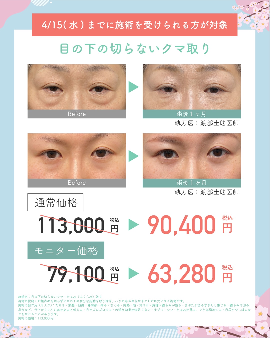 目の下の切らないクマ・たるみ取り/裏ハムラ法が20%OFF