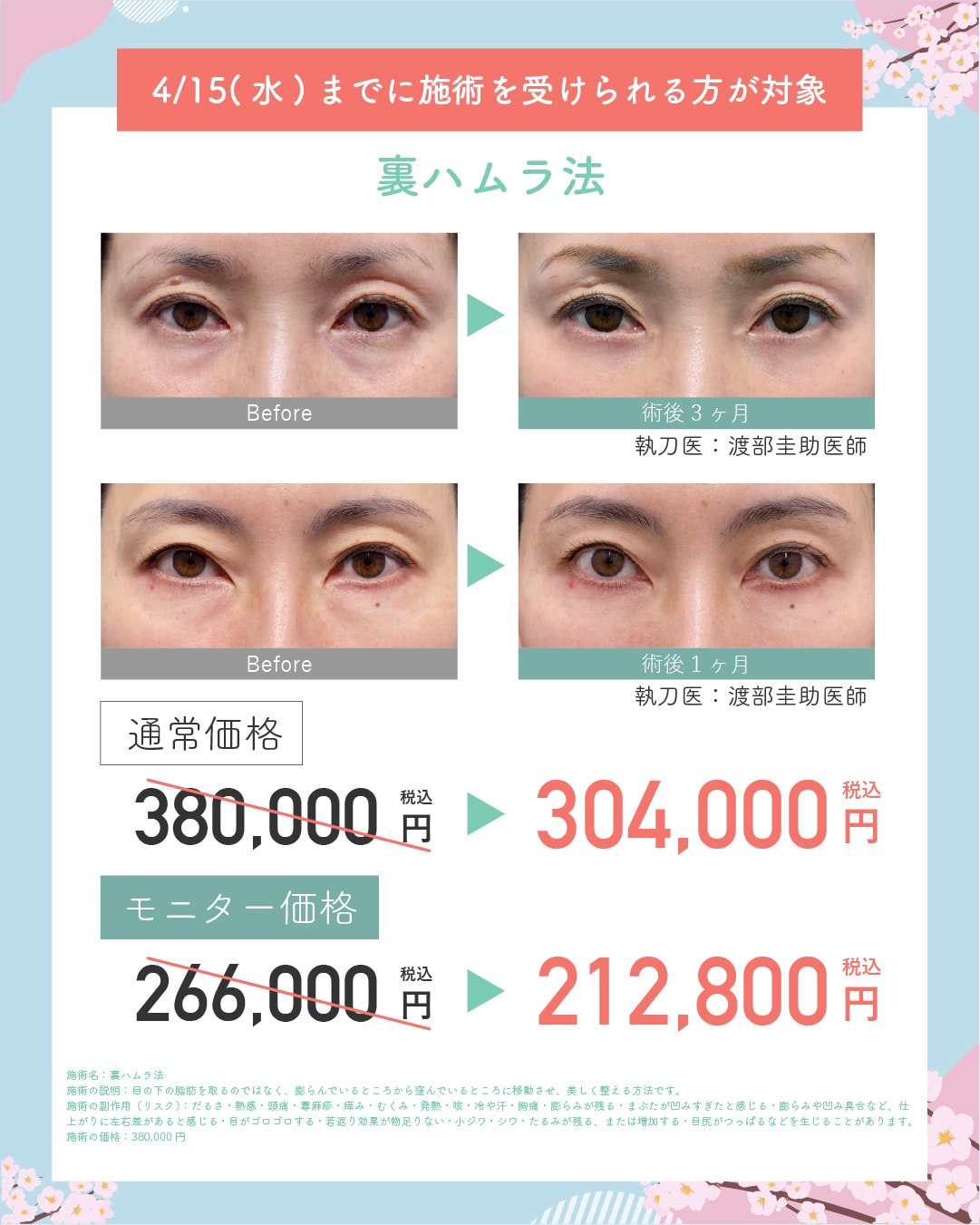 ※切開ハムラ・アイバックリムーブ法は対象外