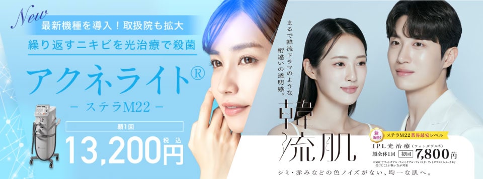 【ステラM22】は、アクネライト・フォトダブル・フォトトリプルが施術可能な、光治療の最新機種です。