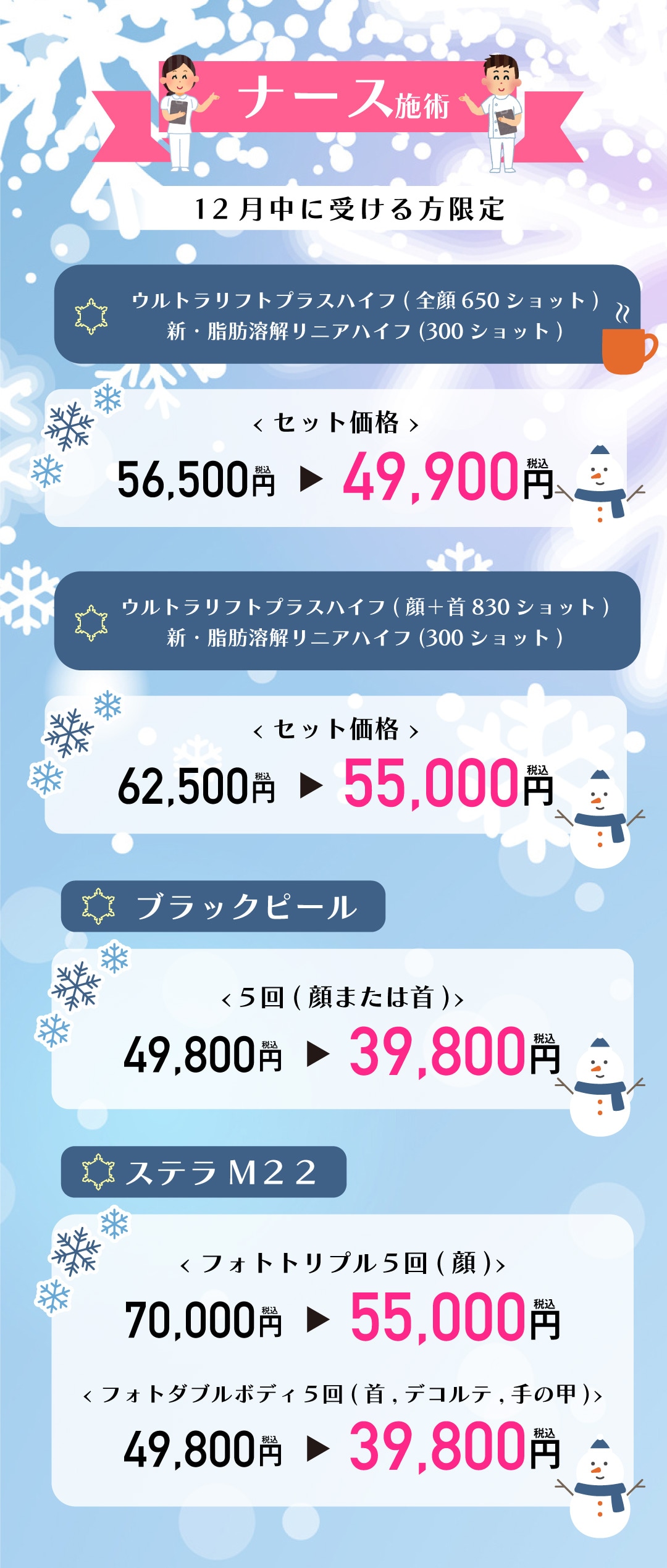 12月末までに受ける方限定の美容皮膚科キャンペーン!12月のラインナップをご紹介★