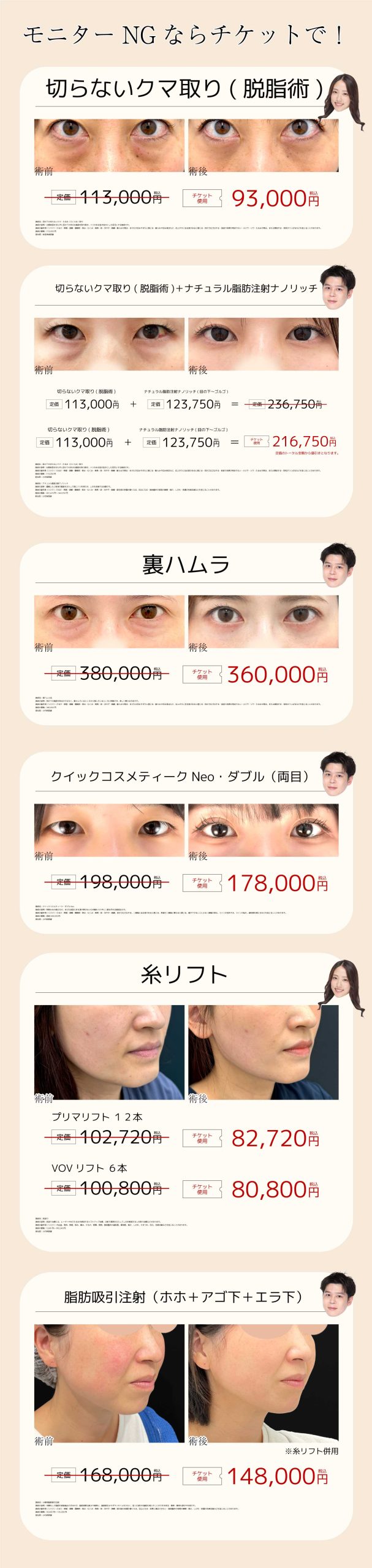 痩身、小顔治療、二重術、クマ取りなど幅広い施術を取り扱っております。