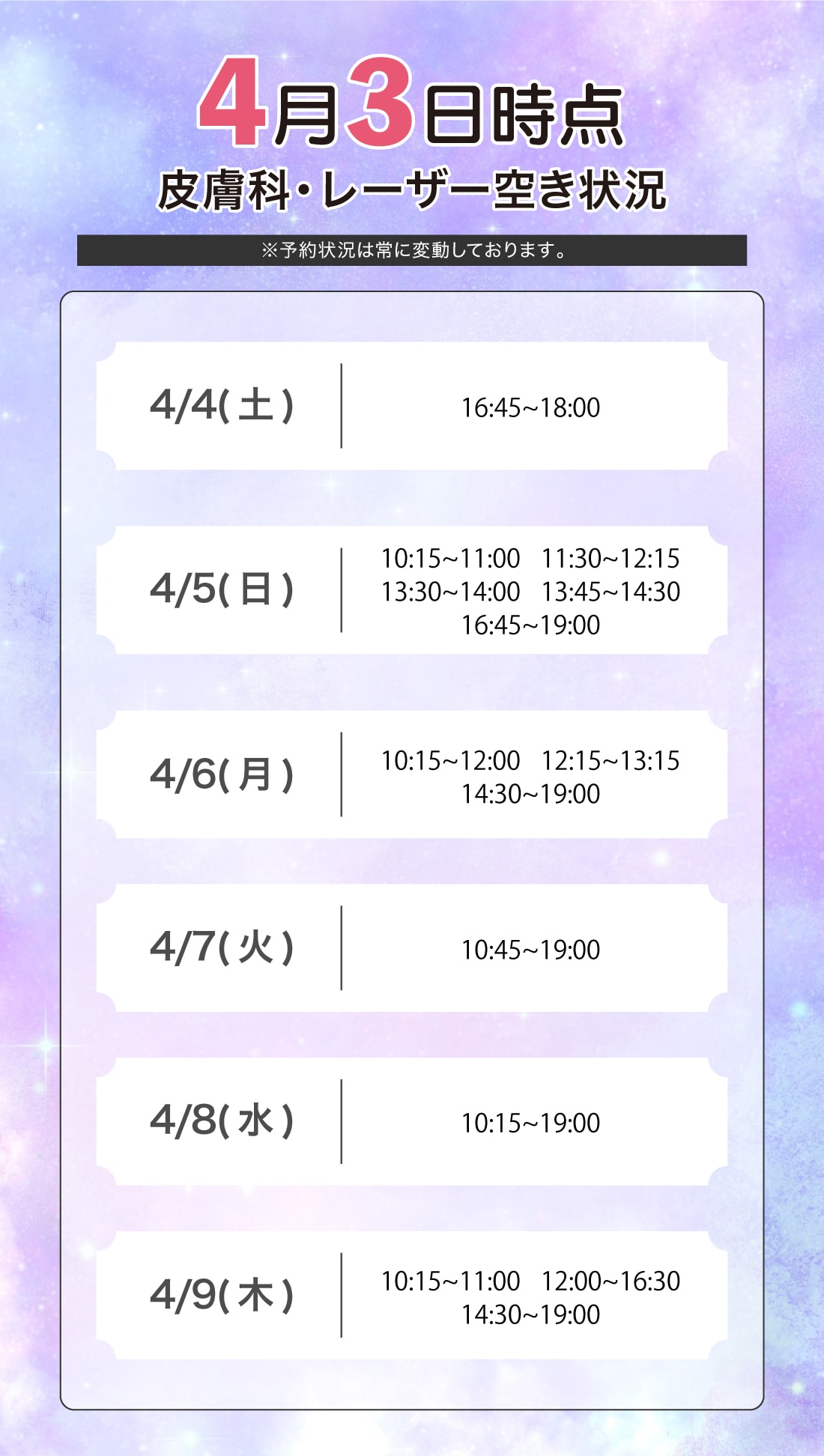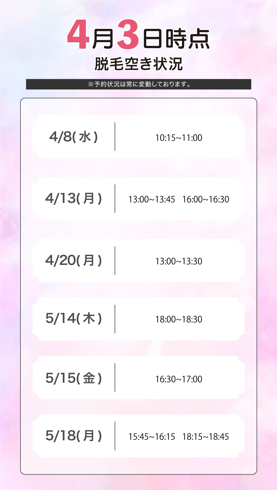 脱毛/レーザー空き状況